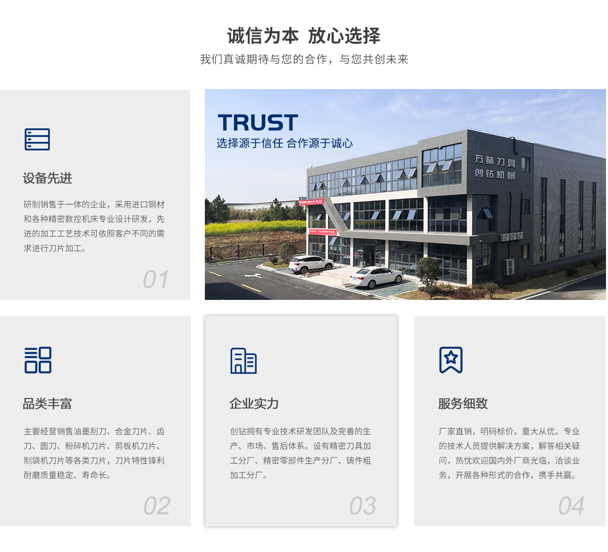 馬鞍山創(chuàng)鉆機(jī)械科技有限公司 INTRODUCTION 馬鞍山市創(chuàng)鉆機(jī)械科技有限公司(創(chuàng)鉆機(jī)械)坐落于鋼鐵之城-安徽馬鞍山,公司擁有專業(yè)的技術(shù)研發(fā)團(tuán)隊及完善的生產(chǎn)、市場、售后體系。公司設(shè)有精密刀具加工分廠、精密零部件生產(chǎn)分廠、鑄件粗加工分廠,...